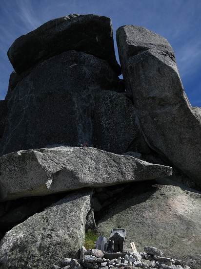 頂上からやや下ったところにあるのが、金峰山信仰の御神体の磐座(いわくら)でもある五丈岩です。