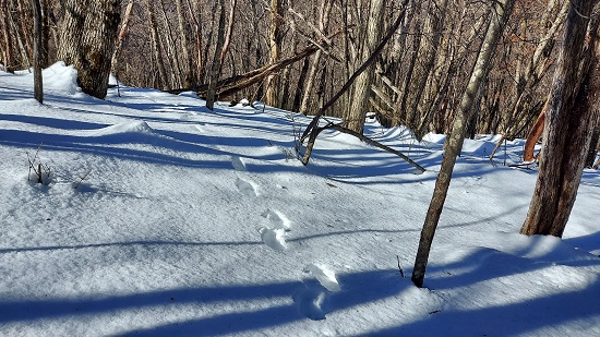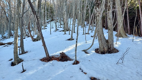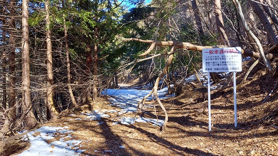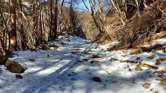 さらに林道を進むと雪に覆われています。