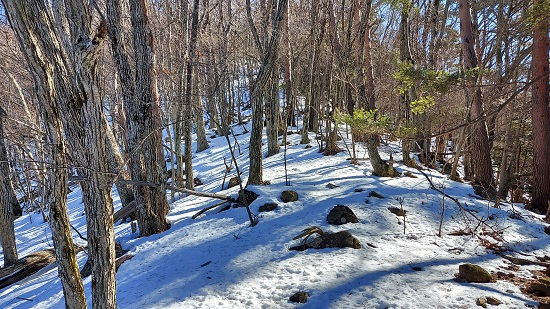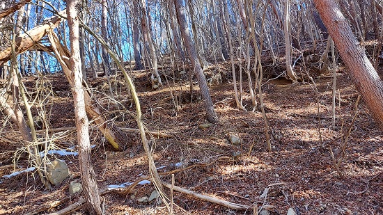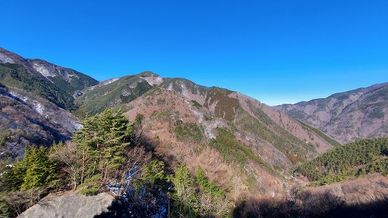 山頂は木々に覆われていますが、葉が落ちているせいである程度周囲の景色が見えます。