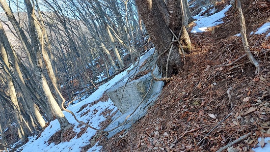 この辺りから山に入り、ひたすら急斜面を尾根沿いに登っていきます。