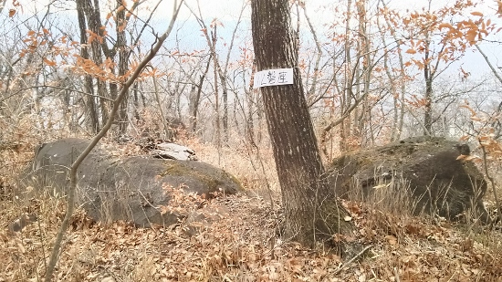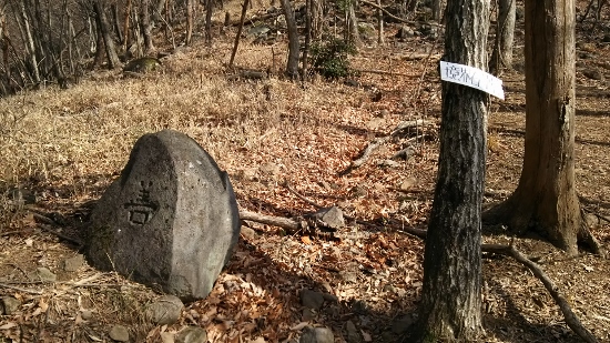 酒折宮も最初はこの山の中腹にあったと言われています。月見山と八人山の間の鞍部に下ると、「善」と刻字された岩があります。