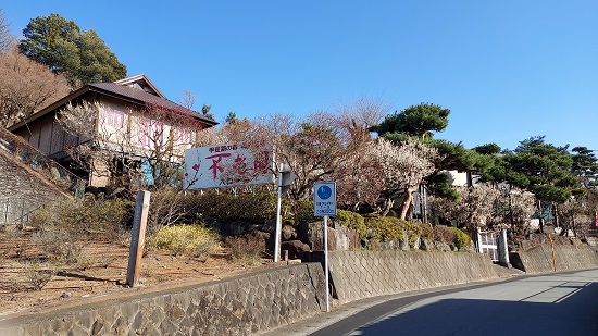 酒折宮の裏の坂道を登っていくと、梅の名所として知られる不老園が見えてきます。