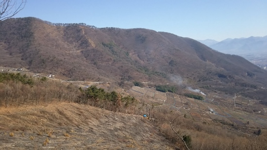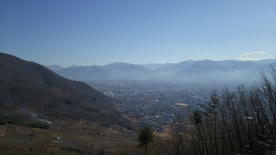 東隣にそびえる大蔵経寺山とその下に広がる盆地を眺めることができます。