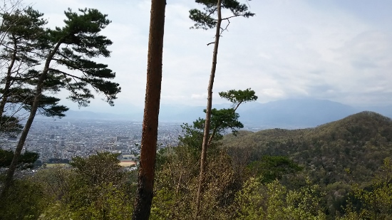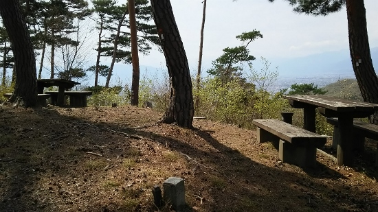見晴らし台からは晴れていれば左手の小松山越しに盆地や富士山が一望できます。