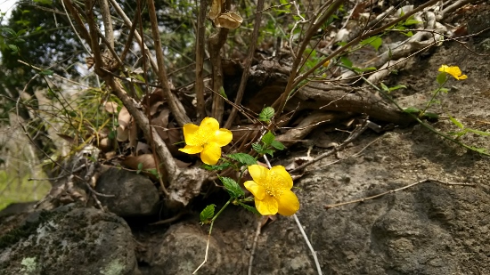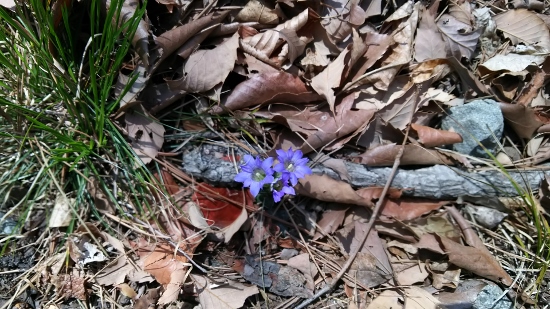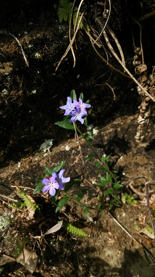 せせらぎもある気持ちのいい道です。ちょうど新緑の季節で(2019年4月14日撮影)、色々な山野草が咲き誇っていました。