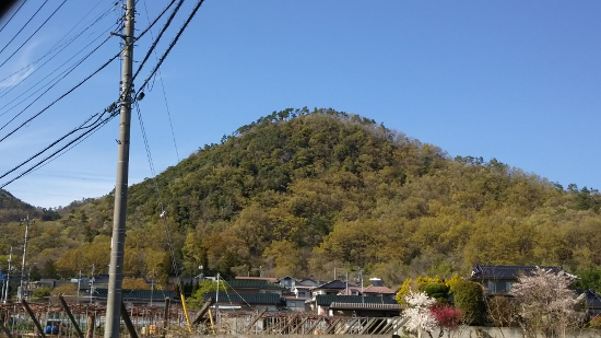 甲府市小松町辺りから千代田湖方面に見える、てっぺんが松で覆われたこんもりした山が小松山です。
