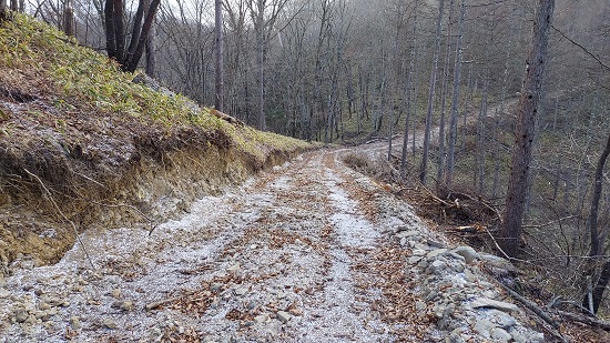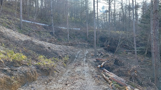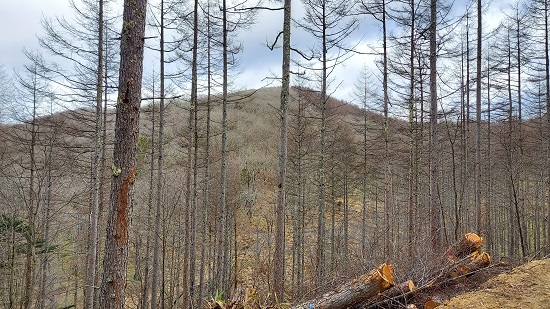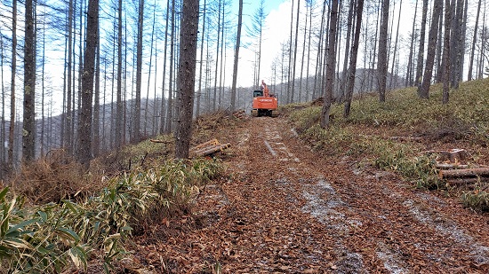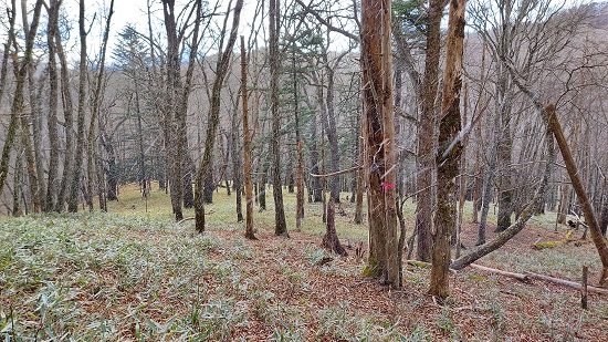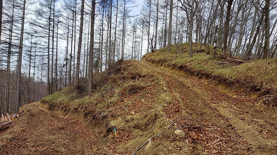 林道から北側斜面をのぞき込むと、登山道があるのがわかります。