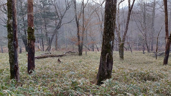 ちなみに倉沢山南側斜面を下りきった辺りには、草むらの中に小さな沢や沼が点在しています。