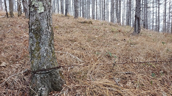 途中の幹に足を引っかける罠のような、謎のワイヤーが張ってありました。