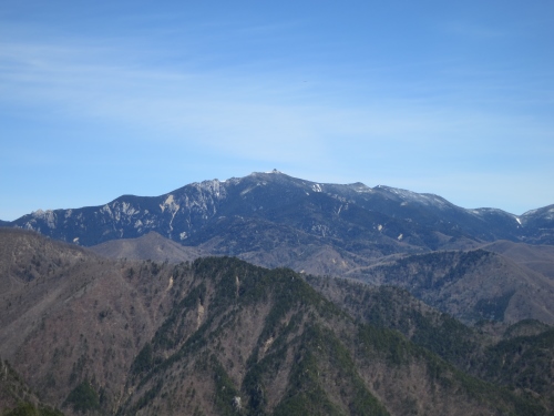 甲府市最高峰の金峰山もよく見えます。頂上にちょこんと飛び出て見えるのが五丈岩です。