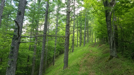 木立の中に続く登山道はとても歩きやすく、新緑の美しさをゆったりと感じることのできる、とても気持ちのいい道です。
