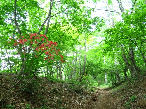 標識に沿って木立の中の道を進むと、山ツツジが咲いていました。