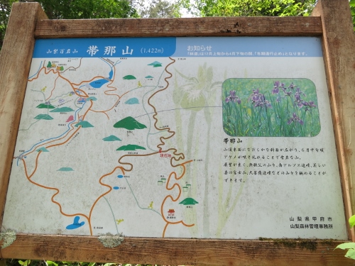 甲府市北部に広がるなだらかな山容の山が帯那山です。千代田湖北部の脚気石神社から登山道が続いています。