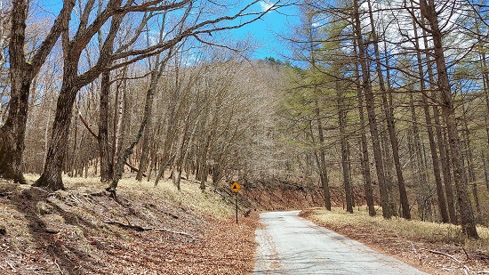 車で長窪峠付近に移動。空きスペースに車を止め、今度は大野山を目指します。