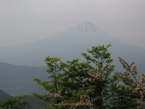 行程の前半は薄暗い樹林帯の登りで展望がなく、稜線に出ると富士山の眺望が素晴らしい、というのは三方分山と同じです。