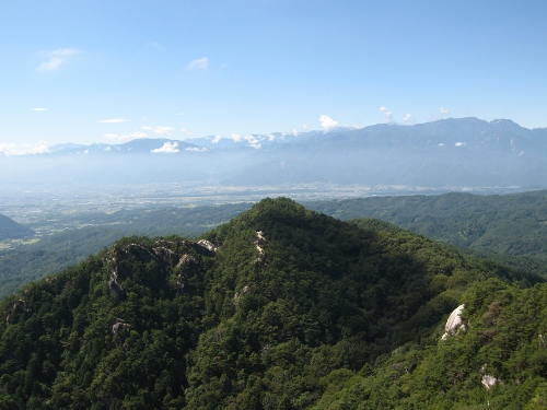 西方面には白根三山、鳳凰三山、甲斐駒ヶ岳などの南アルプスの峰々が見えます。