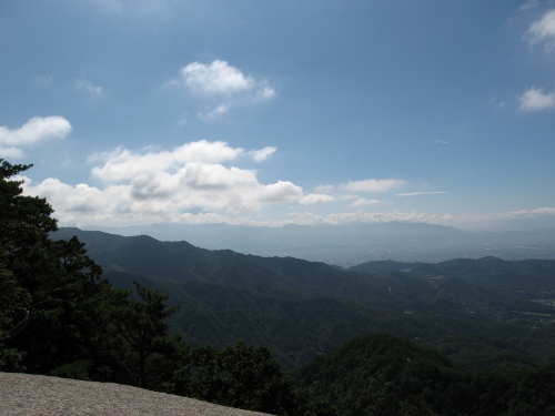 東・南方面には甲府盆地とその向こうに富士山見えます。