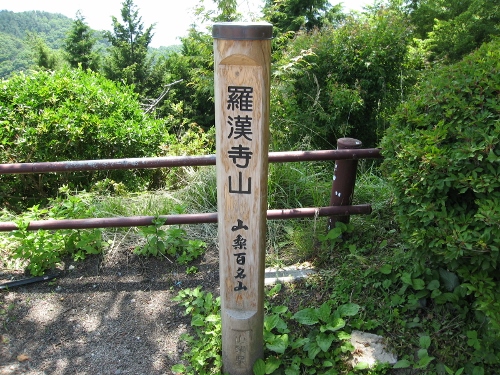 ロープウェイ駅を降りたすぐ近くに「羅漢寺山」の標柱があります。