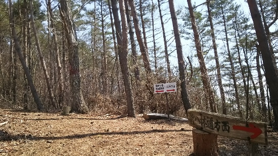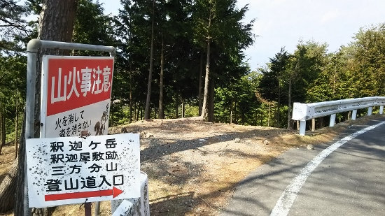 林道をひたすら進んでいくと八坂峠の辺りに登山道入り口の看板があります。