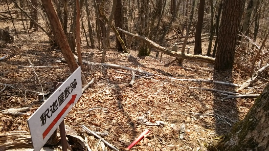 山頂からさらに先に進み、一度下って登り返すと、10分ほどで釈迦屋敷跡に着きます。