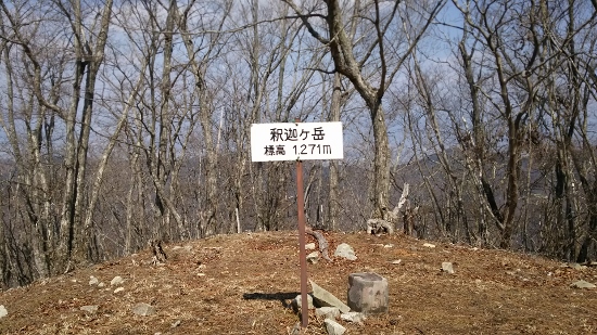 登山口から30分ほどで釈迦ヶ岳山頂に到着。樹木に覆われて展望はありません。