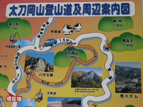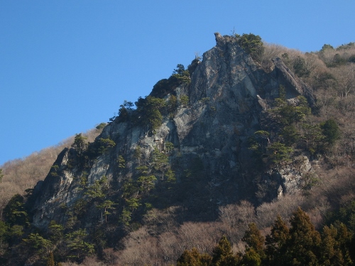 太刀岡山の南面は鋏岩をはじめとする険しい岩壁に覆われており、その威容は駐車場からも望めます。