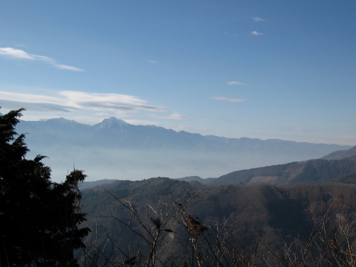 西のほうを見ると、鳳凰三山や甲斐駒ヶ岳など南アルプスの峰々を見渡すことができます。