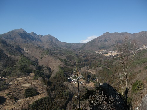 岩の上から北面をに目をやると、観音峠を挟んで西に茅ヶ岳・金ヶ岳、東に曲岳・黒富士が並んでいるのが見えます。