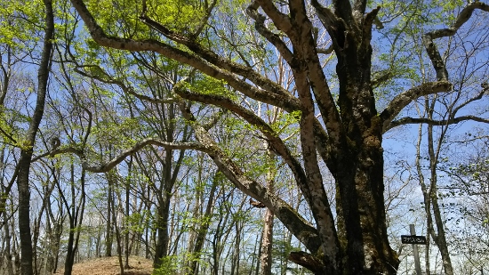 さらに山頂を越えて少し下っていくと、「ブナじいさん」と名付けられたブナの巨木が立っています。