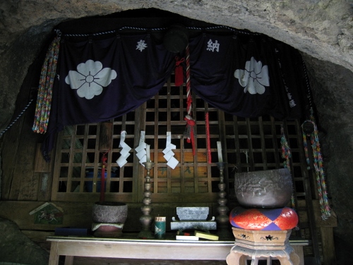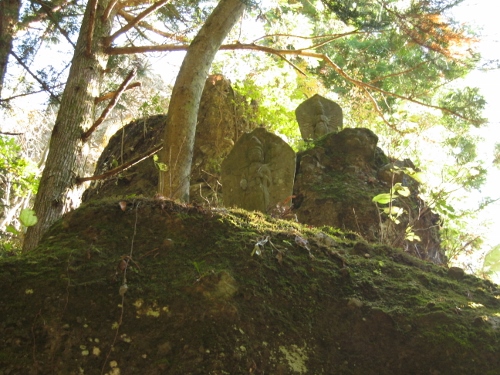 遊歩道沿いの大岩の中には、十六観音などが祀られています。